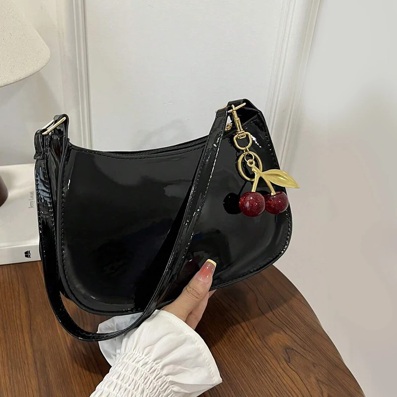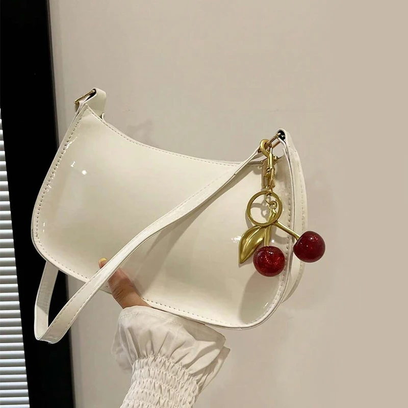 Vintage Retro Shoulder Bag for Women PU Leather Underarm Crossbody Ladies Casual Handbag Purse with Cherry Pendant