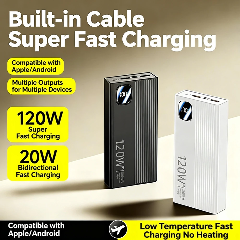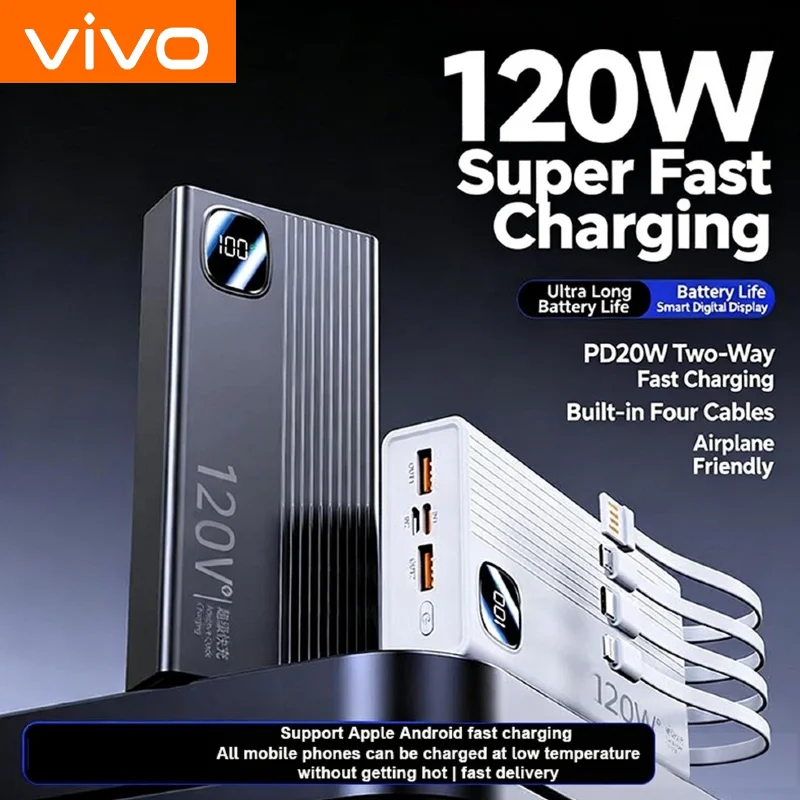 – VIVO120W 200000mAh power bank with a digital display designed for fast charging various devices.