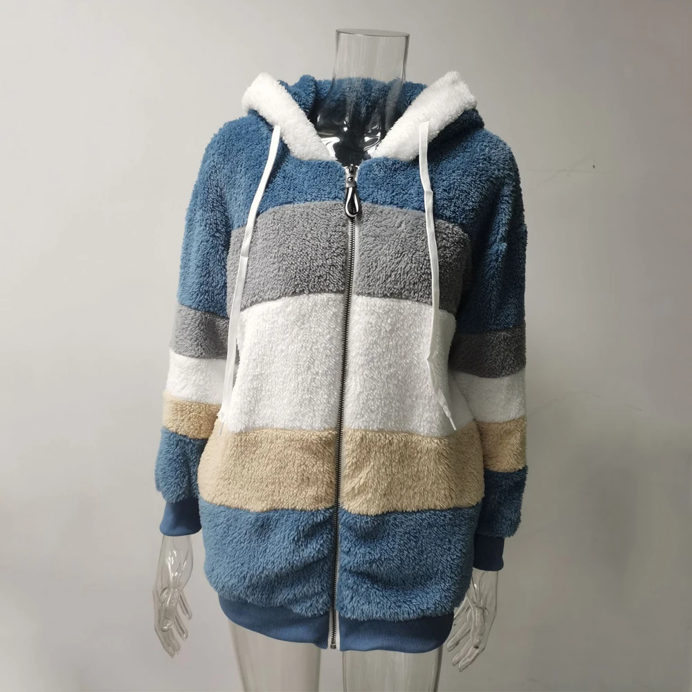 Warm Oversized Hooded Jacket for Women – Plush Coat with Pockets, Autumn/Winter Streetwear