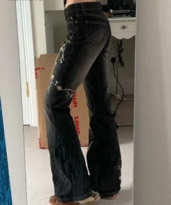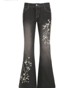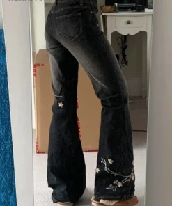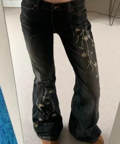 Flared Jeans with Floral Embroidery for Women in Low Rise Design
