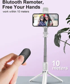 – Wireless Bluetooth selfie stick that doubles as a portable tripod with fill light and remote control.