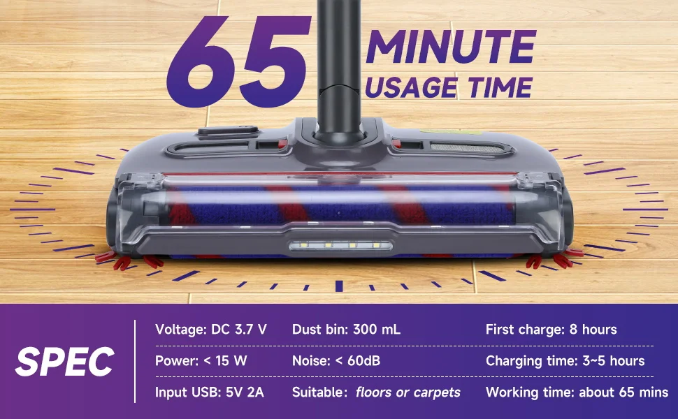 Product accessories: Host * 1/USB charging cable * 1/roller brush * 1/pole * 2/handle * 1/roller brush comb * 1/edge brush * 4/small brush * 1/breathable mesh * 1/instruction manual * 1