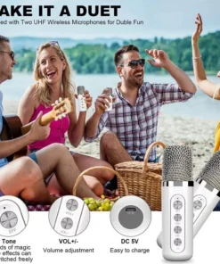 – Portable karaoke machine with Bluetooth functionality.