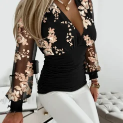 – Women’s casual pullover shirt designed for spring and summer wear.