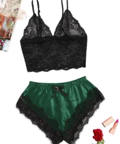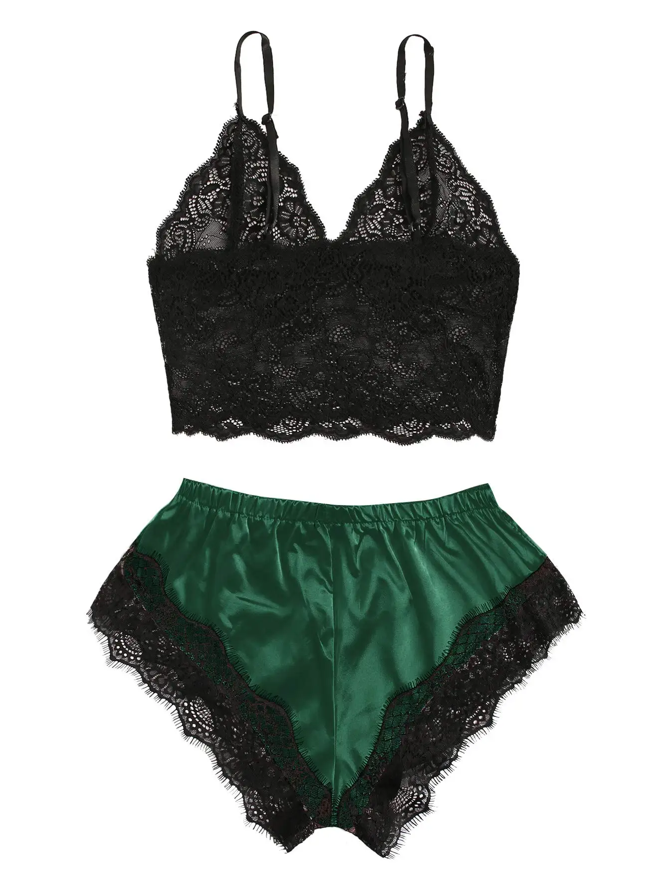 Lace Bralette Cami and Shorts Set, See-Through Design, Breathable Sleepwear for Women