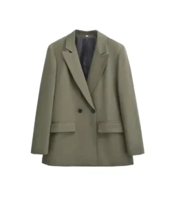 – Women’s double-breasted blazer designed for the office, suitable for middle-aged individuals.
