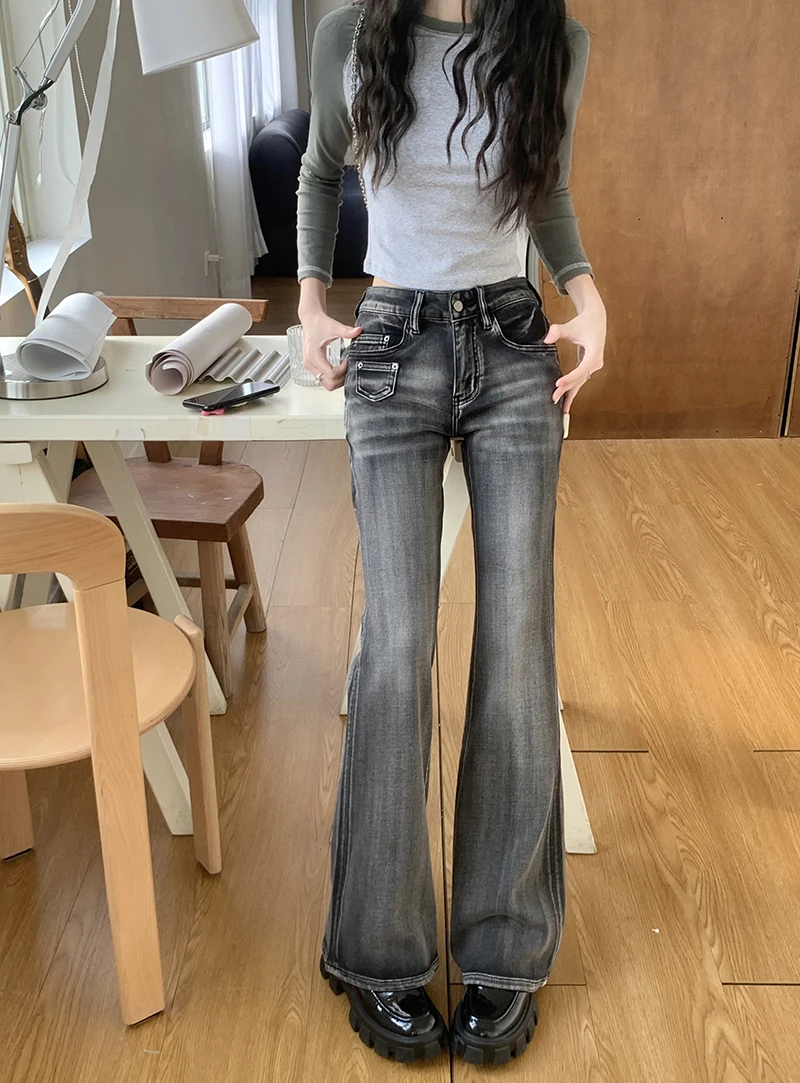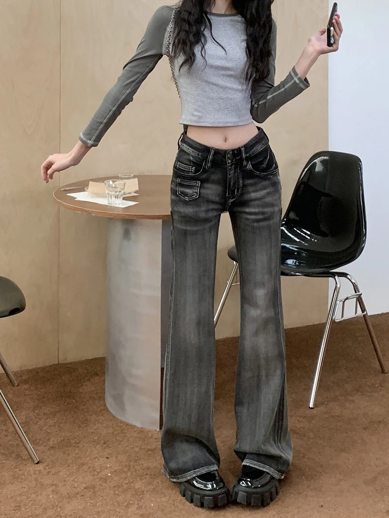 Women’s Gothic Y2K Flare Jeans – Vintage Baggy Denim Trousers