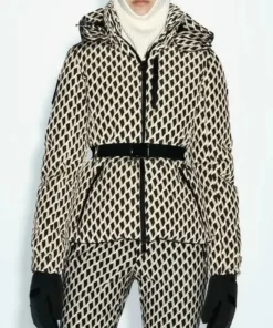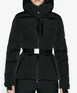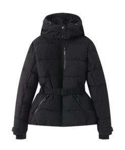 Hooded High Waist Padded Parka with Belt – Warm Windproof Ski Jacket for Women