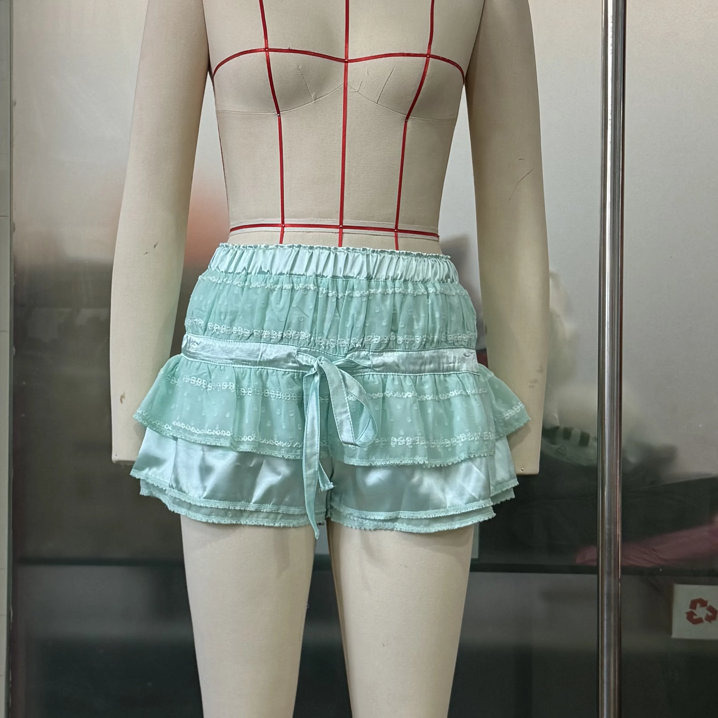 Women Layered Mesh Shorts with Elastic Waistband and Ribbon Detail Breathable Quick Dry Summer Shorts for Women Casual Athletic Shorts for Yoga Running Outdoor Activities