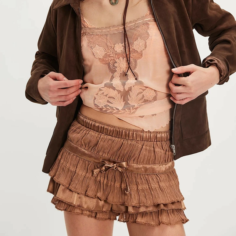 Womens Layered Frilly Ruffle Micro Lolita Bloomers Y2k Low Rise Satin Shorts Lace Fluffy Boxer Mini Boyshorts Panties