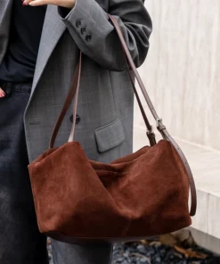 Crossbody Shoulder Bag with Soft Suede Finish in Genuine Cowhide Leather for Women