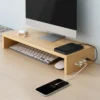 Wooden Computer Stand Riser Desktop Organizer Shelves Bamboo Shelf Gaming Monitor Desk Risers Sturdy Ergonomic Design Modern