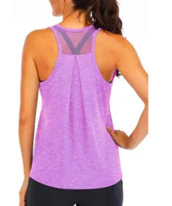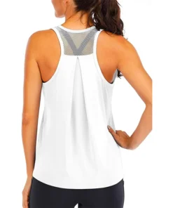 – Women’s sleeveless yoga shirt designed for fitness activities.