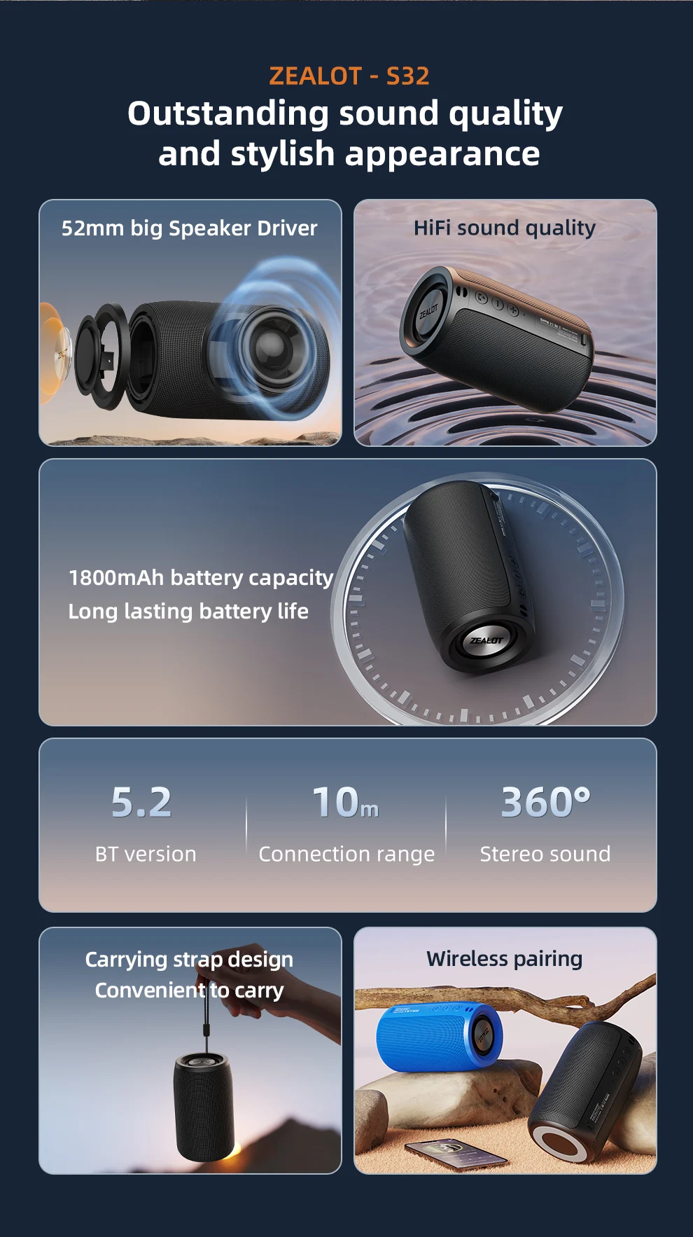 Connect 2 speakers together, they would play together at the same time!After the first connection,the subsequent connection of the two speakers bluetooth wireless will be connected automatically by themselves.Different models of Zealot wireless speakers with bluetooth can do dual pairing by each other. However, either of the two wifi bluetooth speakers portable wireless can be sold alone. One party speaker also plays great!