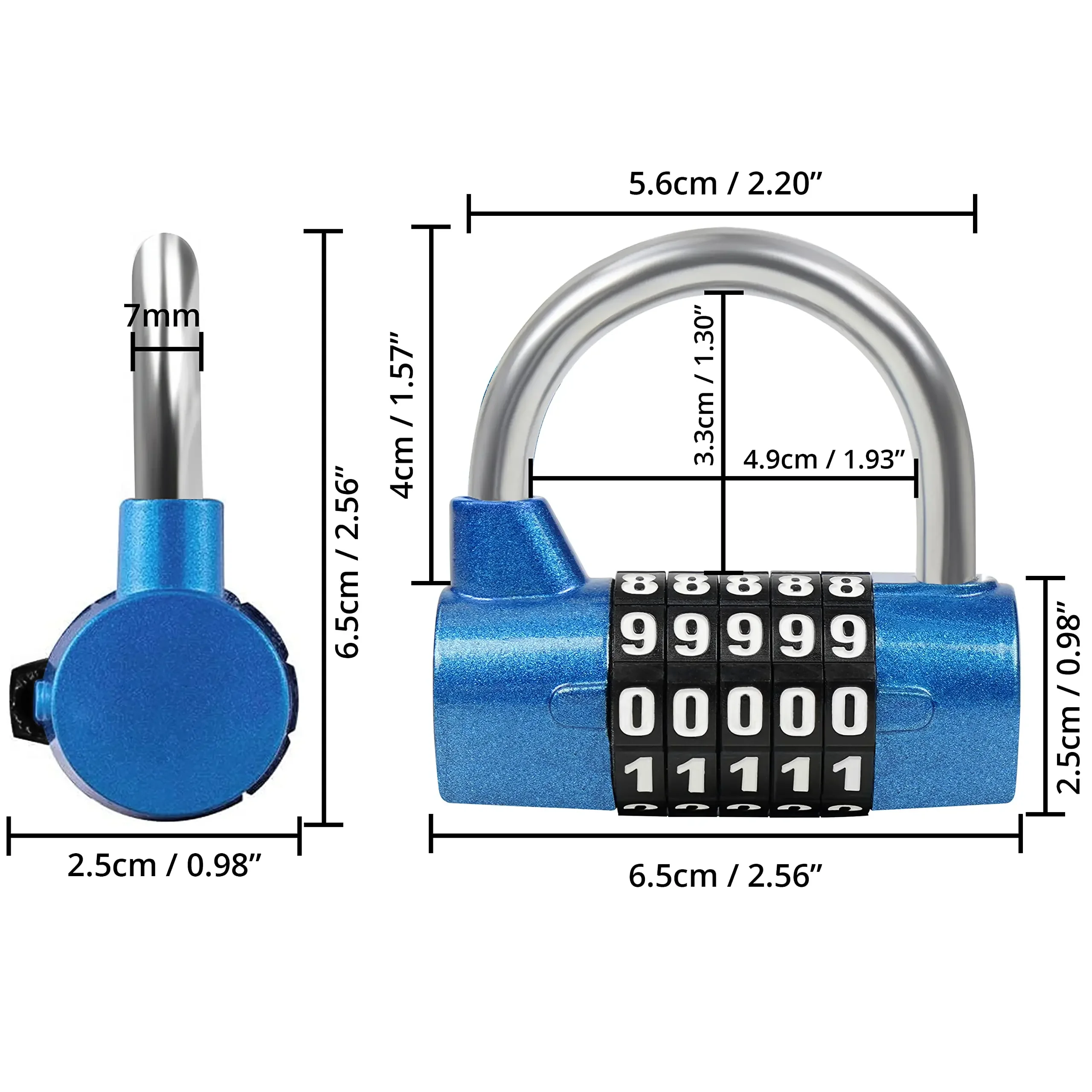 5 Digital Password Zinc Alloy Combination Door Lock Code Motorcycle Padlock for Locker Room Cabinet Student Drawer Bike Bolt